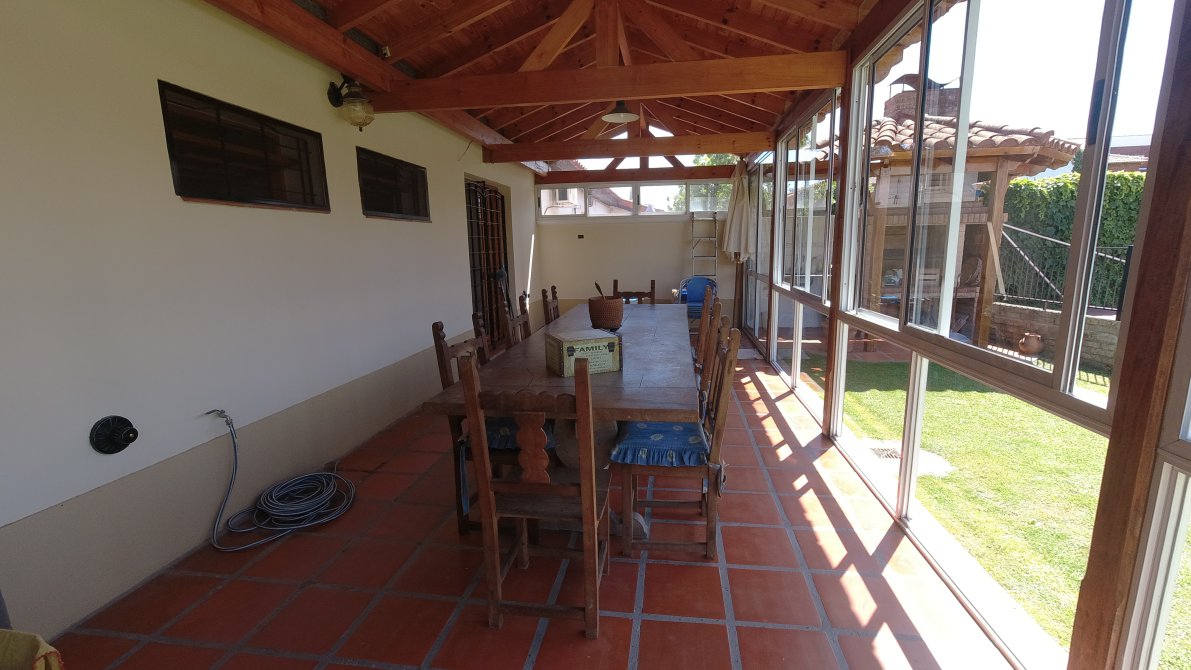 HERMOSA CASA EN BARRIO UNO EN UNA PLANTA DE 170 MTS. MUY CÁLIDA, CUBIERTOS APROX. MÁS SEMICUBIERTOS, 210 MTS. TOTALES APROX. LOTE DE 600 MTS. APROX. CUENTA CON HALL DE ENTRADA, LIVING CON ESTAR Y HOGAR A LEÑA, COMEDOR FORMAL,COCINA COMEDOR DIARIO, BAÑO COMPLETO DE RECEPCIÓN, 3 DORMITORIOS, UNO EN SUITE, CON PLACARD, QUINCHO CUBIERTO CON PARRILLA Y MESADA CON BACHA, DEPENDENCIA DE SERVICIO INDEPENDIENTE DE LA CASA, O DEPARTAMENTO DE HUESPEDES, CON BAÑO COMPLETO, PISCINA DE 9 X 4 MTS. REVESTIDA Y CON FILTRADO AUTOMÁTICO. HERMOSO PARQUE ARBOLADO.